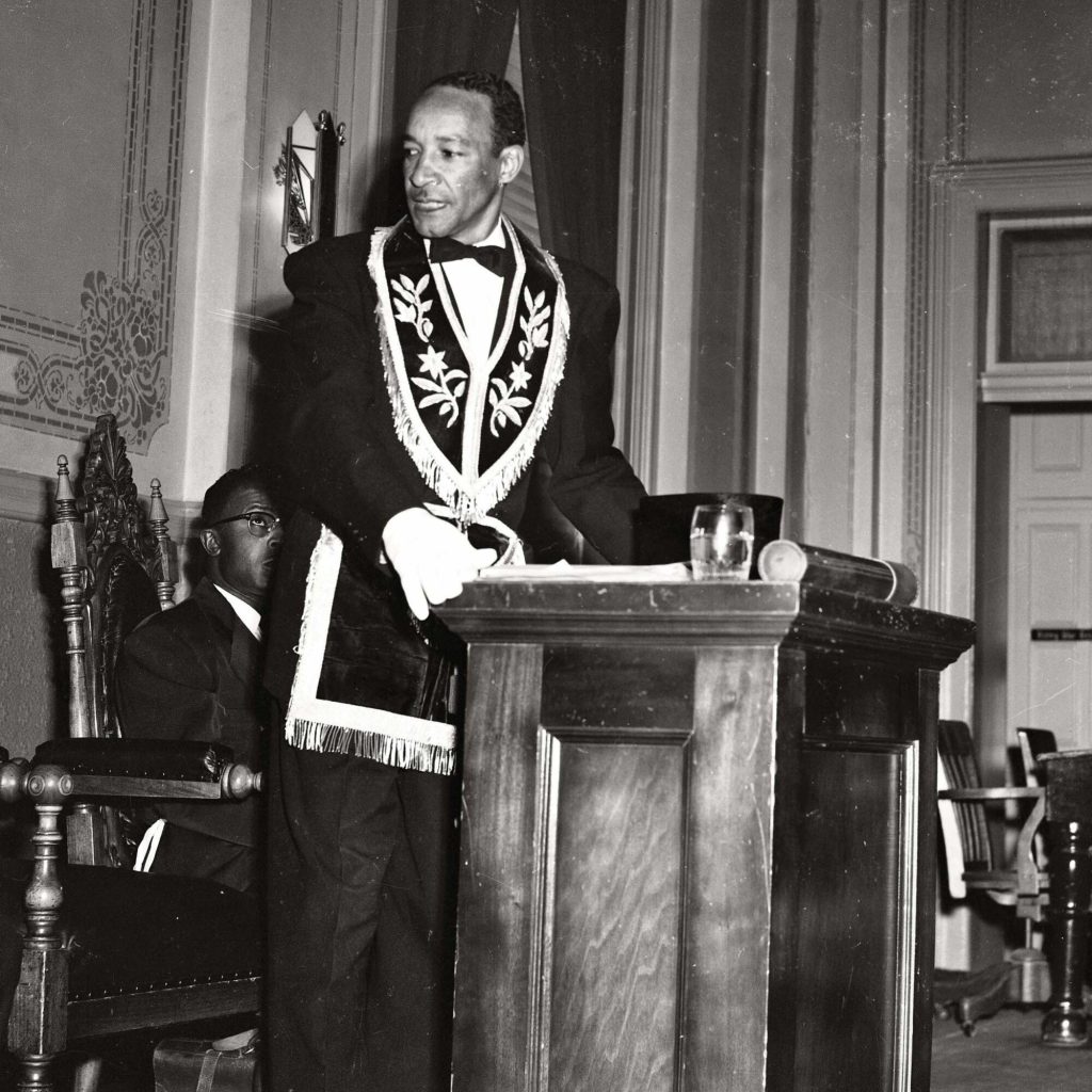 Above: Members of Jerusalem Lodge № 72 at Hannibal Hall in San Francisco, 1954. The